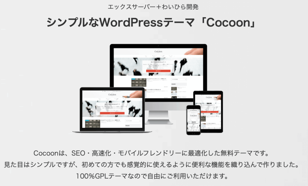 「無料テーマの王様」と言っても過言ではないのが、このCocoonです。
