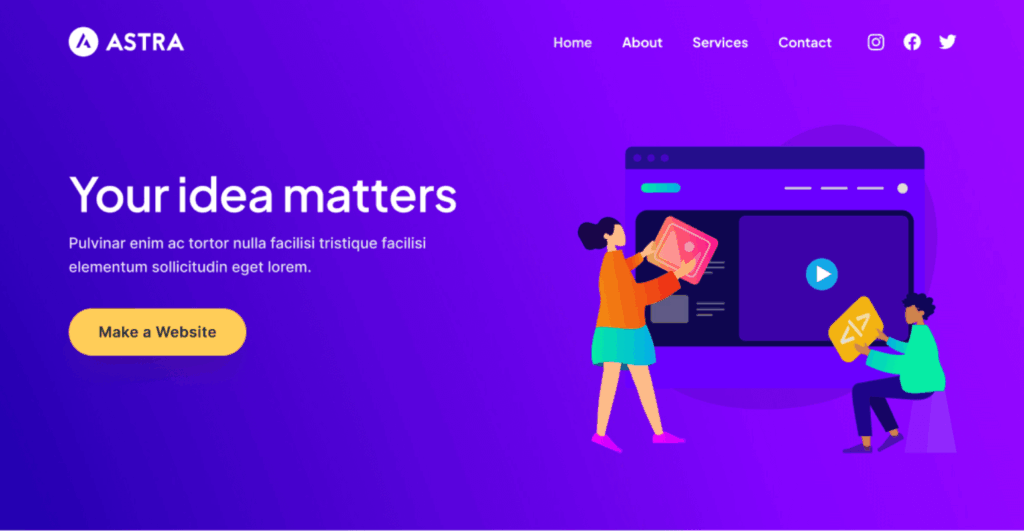 Astraの魅力は、「スターターテンプレート」が豊富なこと。プロがデザインしたサイトの雛形をワンクリックでインポートでき、あとは文字や画像を差し替えるだけで、あっという間に美しいサイトが完成します。