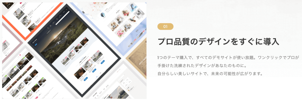 Gold Mediaは、SEO・速度・デザインの自動最適化と、計算された導線設計・CTA配置により、どんなジャンルでも成果の出るデザインを約束するテーマです。