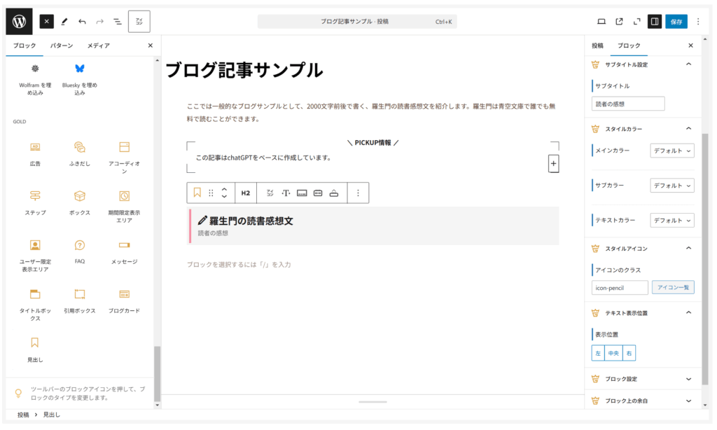 以前は「装飾やレイアウト」に1記事あたり30分以上使っていましたが、Gold Mediaではプリセット装飾で一瞬。