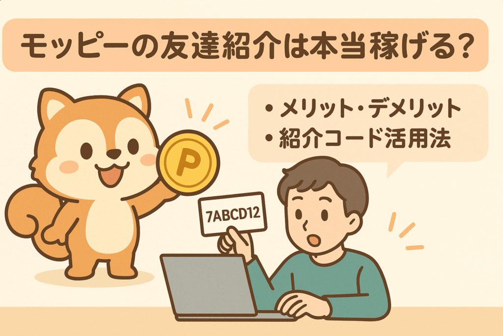 「モッピーの友達紹介ってよく聞くけど、本当に稼げるの?」「やり方が分からないし、なんだか友達に紹介するのは気が引ける…」「自分の紹介コードってどこで見るの?」